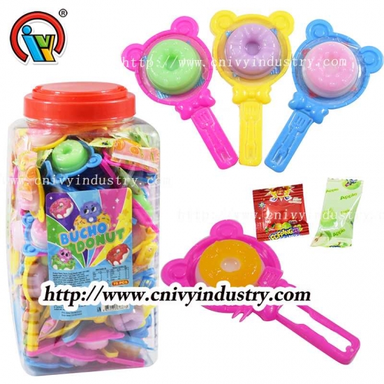 Bonbons gélifiés en forme de beignet avec des bonbons pétillants + confiture |