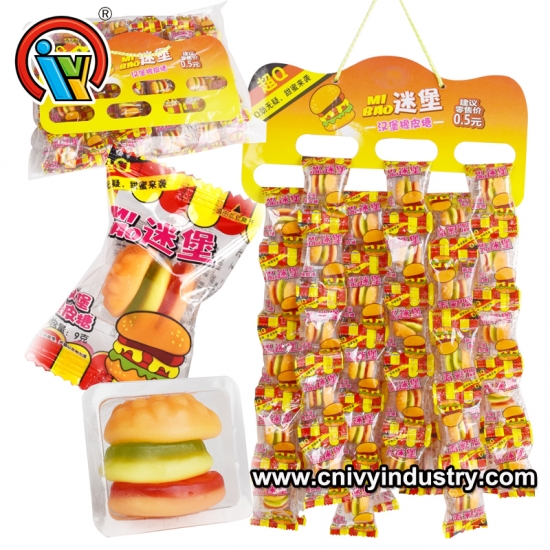 Bonbons gommeux hamburger de bon goût direct d'usine à vendre. un dessin animé a 10 sacs, un sac a 60 pièces.